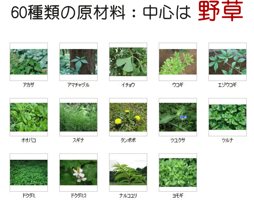 | 商品詳細 | ●成分/重量 100mlあたり:マグネシウム 66mg 、L-カルニチン 500mg、MSM 600mg、 ガラクトマンナン 666mg、ビフィズス菌 133億個、ショウガ抽出物 6mg ●内容量:300ml×12 ●賞味期限:24ヶ月 ●栄養表示:100mlあたり:エネルギー 246kcal、タンパク質1.1g、脂質 0g、炭水化物 60.5g 、食塩相当量 0.102g、水分 60.7g、灰分 0.5g ●保存方法:直射日光・高温多湿な場所を避け、冷暗所で保存して下さい。 ●原材料:糖類(蔗糖、黒糖、オリゴ糖)、 野草類(ドクダミ、オオバコの葉、ハトムギ、エビスグサ、ヨモギ、スギナ、アカザ、イチョ ウの葉、カンゾウ、スイカズラ、 マタタビの木、クコの葉、ツルナ、ナルコユリ、アマチャヅル、ウコン、オトギリソウ、カワラケツメイ、カキドオシ、ケイ(桂)、 エゾウコギ、ツユクサ、ハブソウ、マツ葉、キダチアロエ、アカメガシワ、ウコギ、クコの 実、クマザサ、タンポポ、ナンテンの葉、コナラ、ツチアケビ)、 野菜類(キャベツ、モヤシ、ブロッコリー、キュウリ、玉ネギ、大根、人参、馬鈴薯、レンコン、 ゴボウ、山芋、椎茸、舞茸、ホウレン草、ナタ豆、パセリ、トマト、ニラ、ニンニク、小松菜、 カブ)、 果物類(パパイヤ、パイナップル、リンゴ、レモン)、 昆布エキス、貝カルシウム、 ガラクトマンナン、MSM、L-カルニチン、ビフィズス菌、ショウガ抽出物 /塩化マグネシウム(一部にやまいも、りんごを含む) |